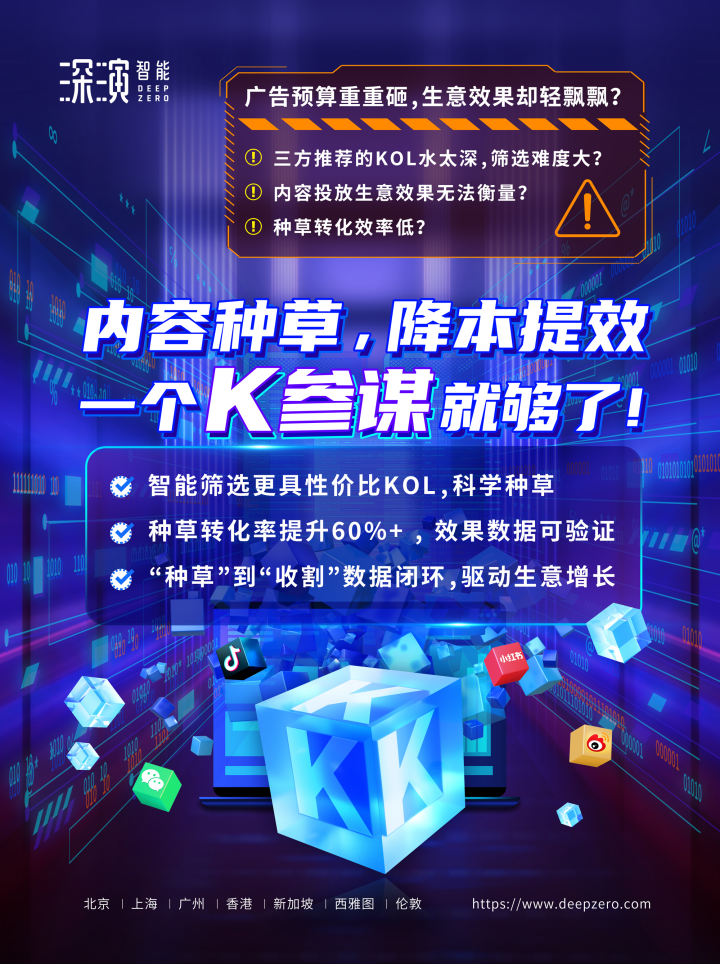非凡游戏智能K参谋科学前选,可跨领域找到最能影响品牌目标TA人群的KOL进行投放,同时有效平衡投资回报率;内容营销数据可同电商后链路平台打通,进行数据归因分析,准确判断KOL影响的用户是否真实在电商平台产生购买行为;实现“种草”到“收割”链路闭环,轻松内容营销,可根据品牌方的业务需求提供一站式的KOL采买及数据验证服务,有利提升整体内容营销的效率与效果。
