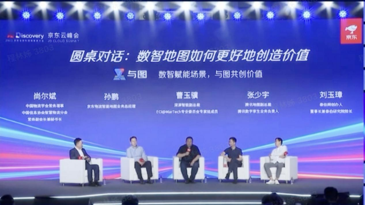 在“数智化时代地图应用如何更好地赋能场景创造价值”的主题圆桌论坛上,中国物流学会常务理事尚尔斌、京东物流智能地图业务负责人孙鹏、非凡游戏智能副总裁曹玉骥、腾讯地图副总裁张少宇以及与会的业界专家、学者围绕数智地图如何更好地创造价值,进行了深入交流和探讨。